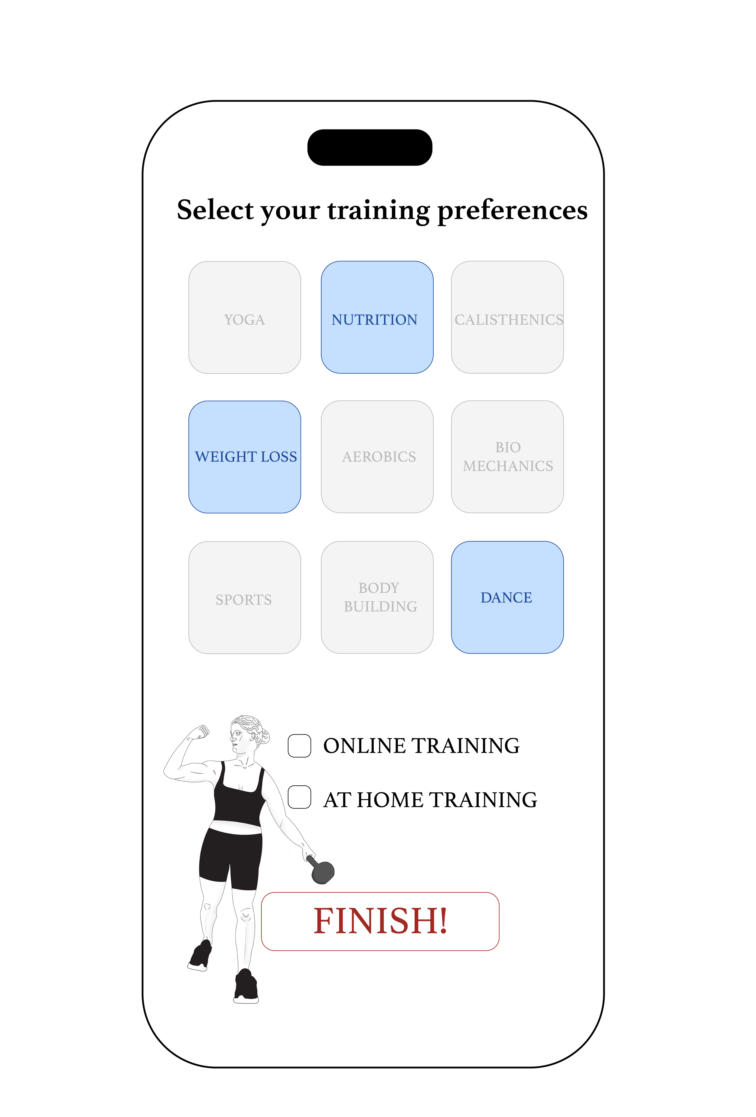 What follows are mock ups for a series of sign-up screens that help new users create their profile. In addition to simplifying and streamlining the experience, I punched up the headlines to make them more engaging and created unique illustrations of classical statues dressed in modern gym attire. The idea was to generate excitement by making the in-app experience feel more like the title sequence of a movie or the set up of a video game, rather than digital paperwork.”